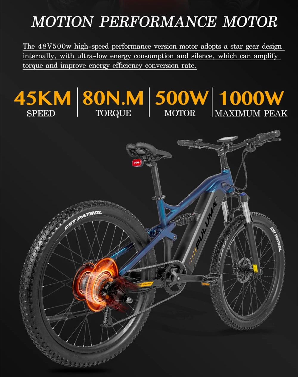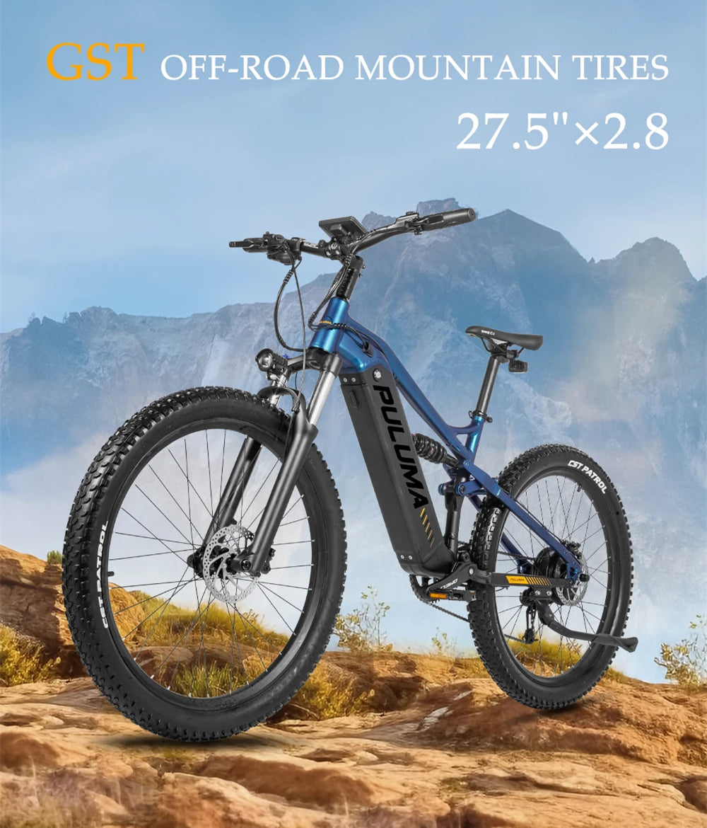 Professional Off-road 27.5 Inches Electric Mountain Bike , UP to 45km/h , 48V 20Ah Large Lithium Battery , Both Hydraulic Disc Brakes , Aluminum Alloy Frame , 27.5 "×2.8" CST Tires , with Pedal Assist System