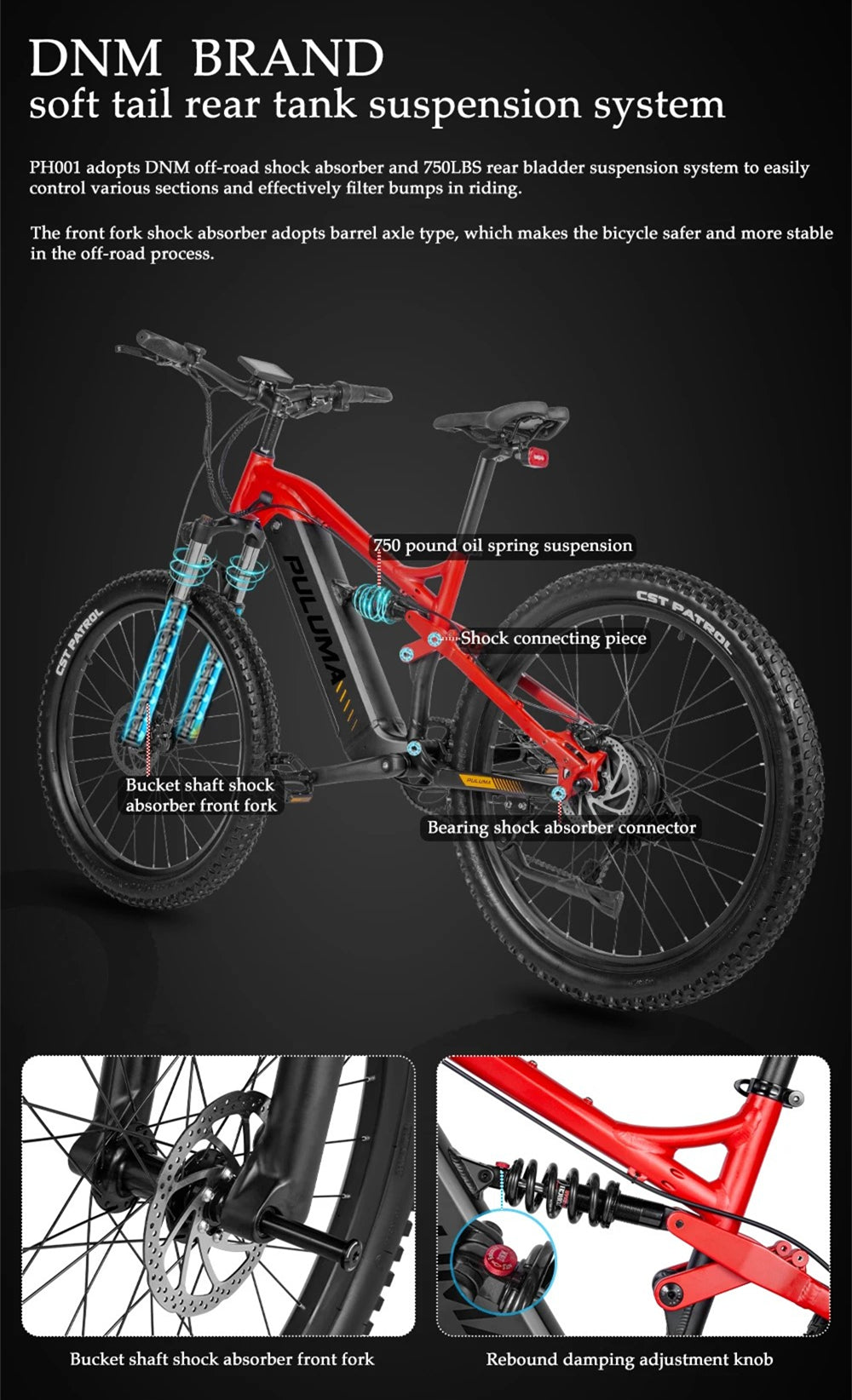 Compartir Professional Off-road 27.5 Inches Electric Mountain Bike , UP to 45km/h , 48V 20Ah Large Lithium Battery , Both Hydraulic Disc Brakes , Aluminum Alloy Frame , 27.5 "×2.8" CST Tires , with Pedal Assist System