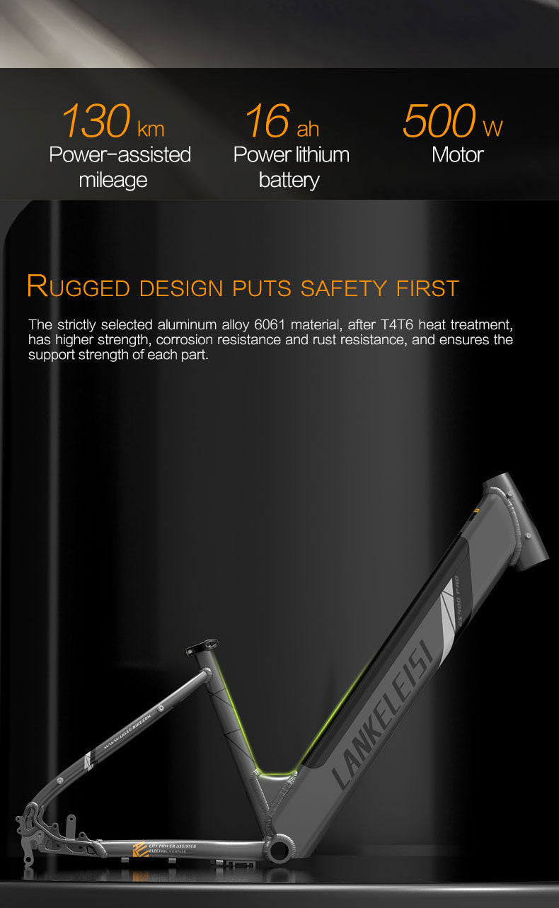 Motor: 48V 500W rear brushless motor, waterproof grade IPX54