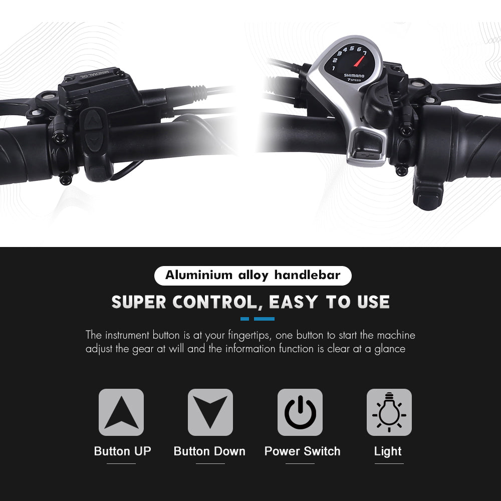 3 körlägen: Med helt elektriskt, med pedalhjälpläge och själv kan du välja det fullständiga elektriska läget för att njuta av en avkopplande tid och kan även använda den för att träna. Det är enkelt att ändra effektnivåer genom att trycka på den vänstra knappen under displaypanelen efter dina behov.